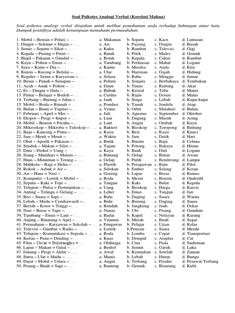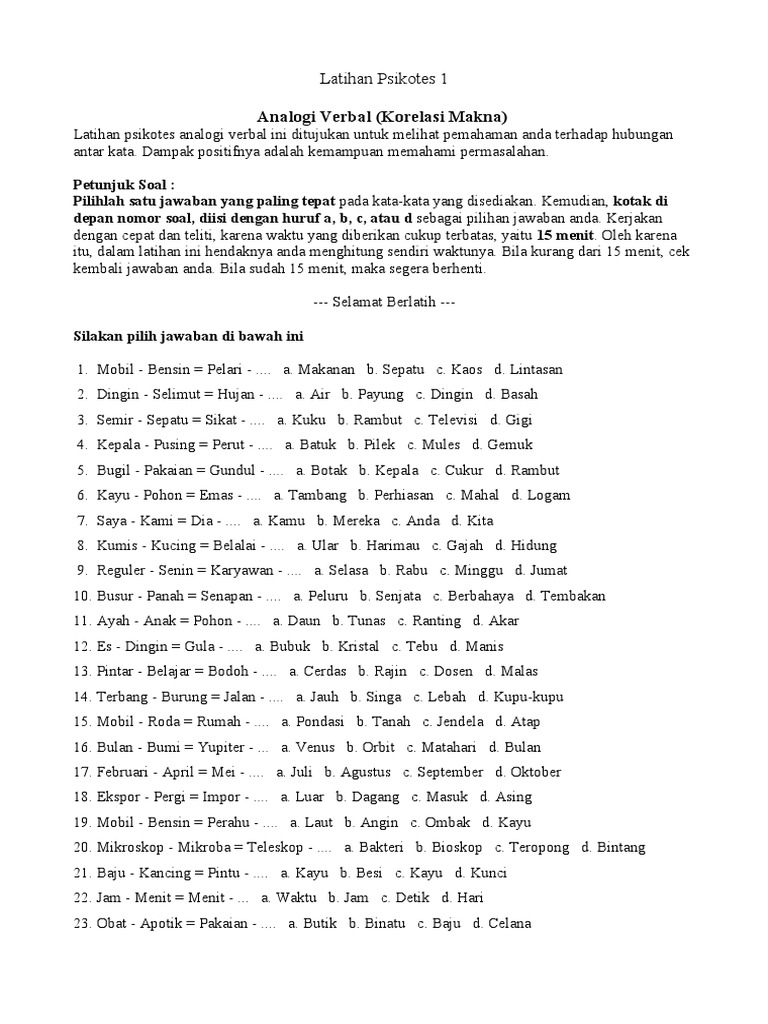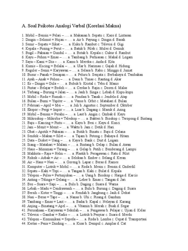 contoh soal psikotes analogi Download