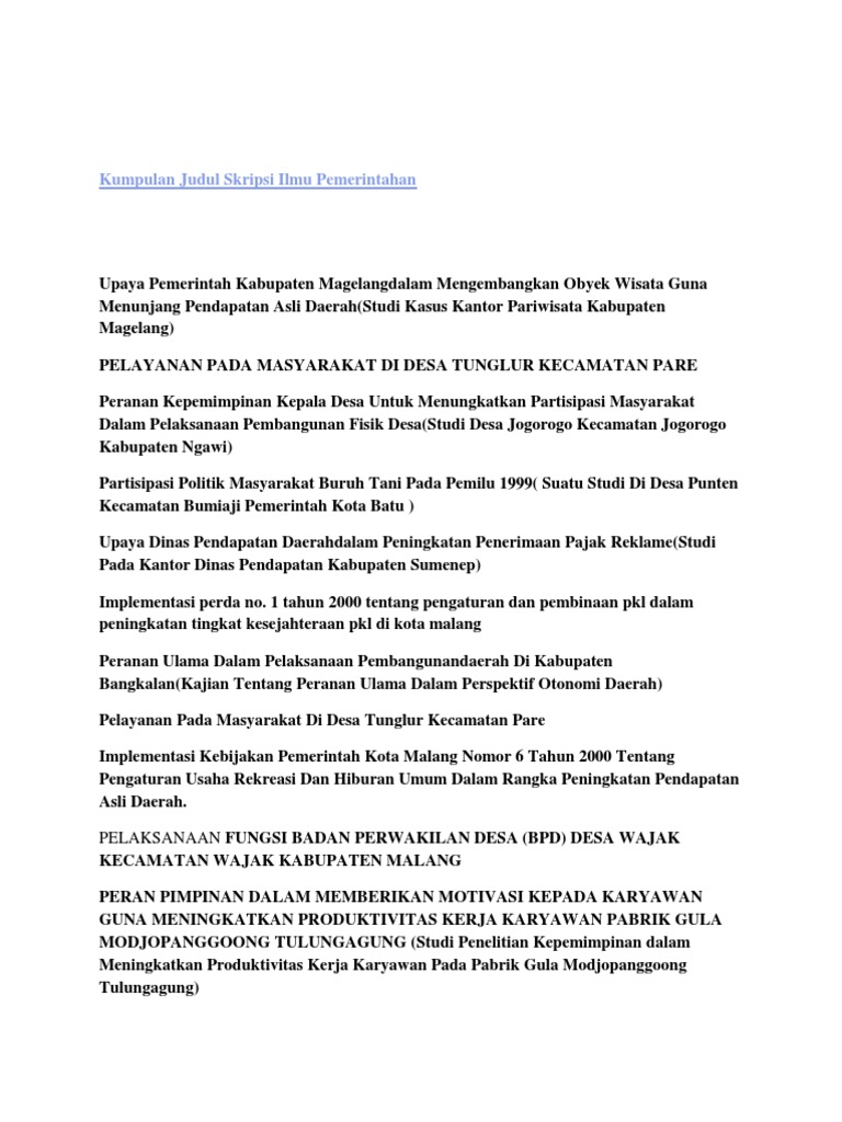 Are you looking for pdf skripsi ilmu pemerintahan pdf, word document or powerpoint file formats for free? Then you already in the right place. Find any document from Microsoft Word, PDF and powerpoint file formats in an effortless way.