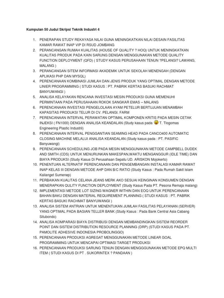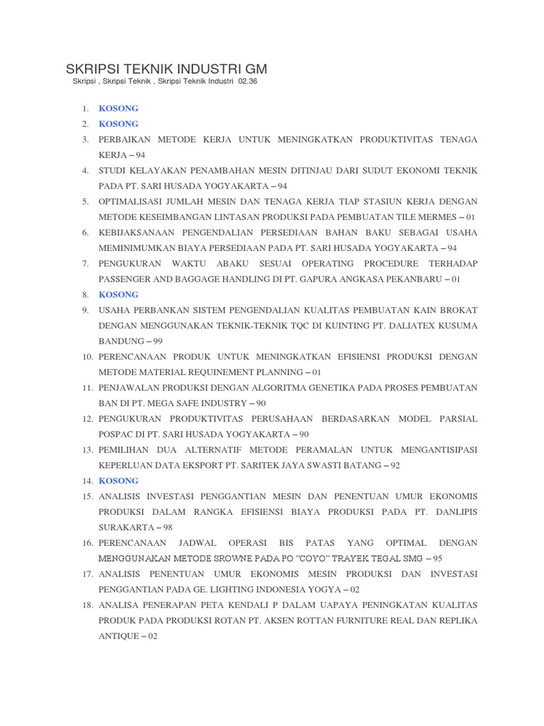 Are you looking for skripsi pdf teknik industri pdf, word document or powerpoint file formats for free? Then you already in the right place. Find any document from Microsoft Word, PDF and powerpoint file formats in an effortless way.